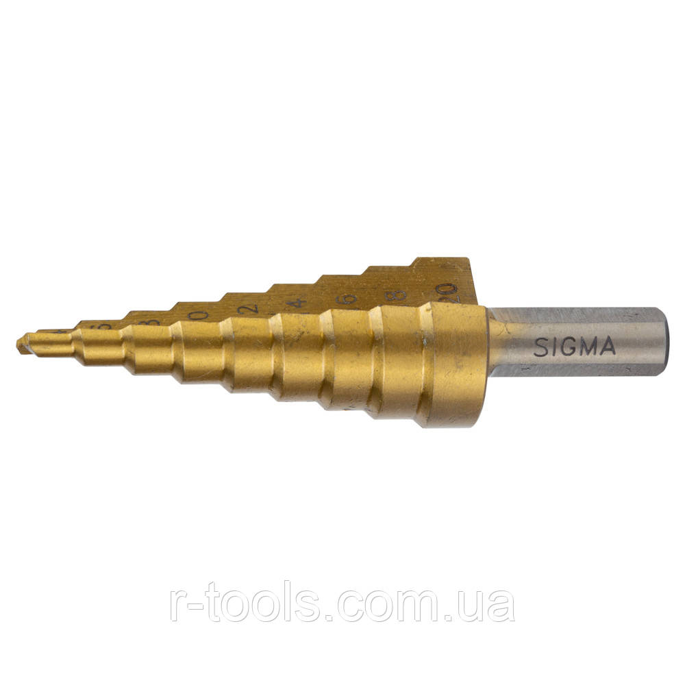 Свердло для металу ступеневе HSS-TIN титанове з прямою канавкою Ø 4-12 мм крок 2 мм блістер SIGMA 1186041