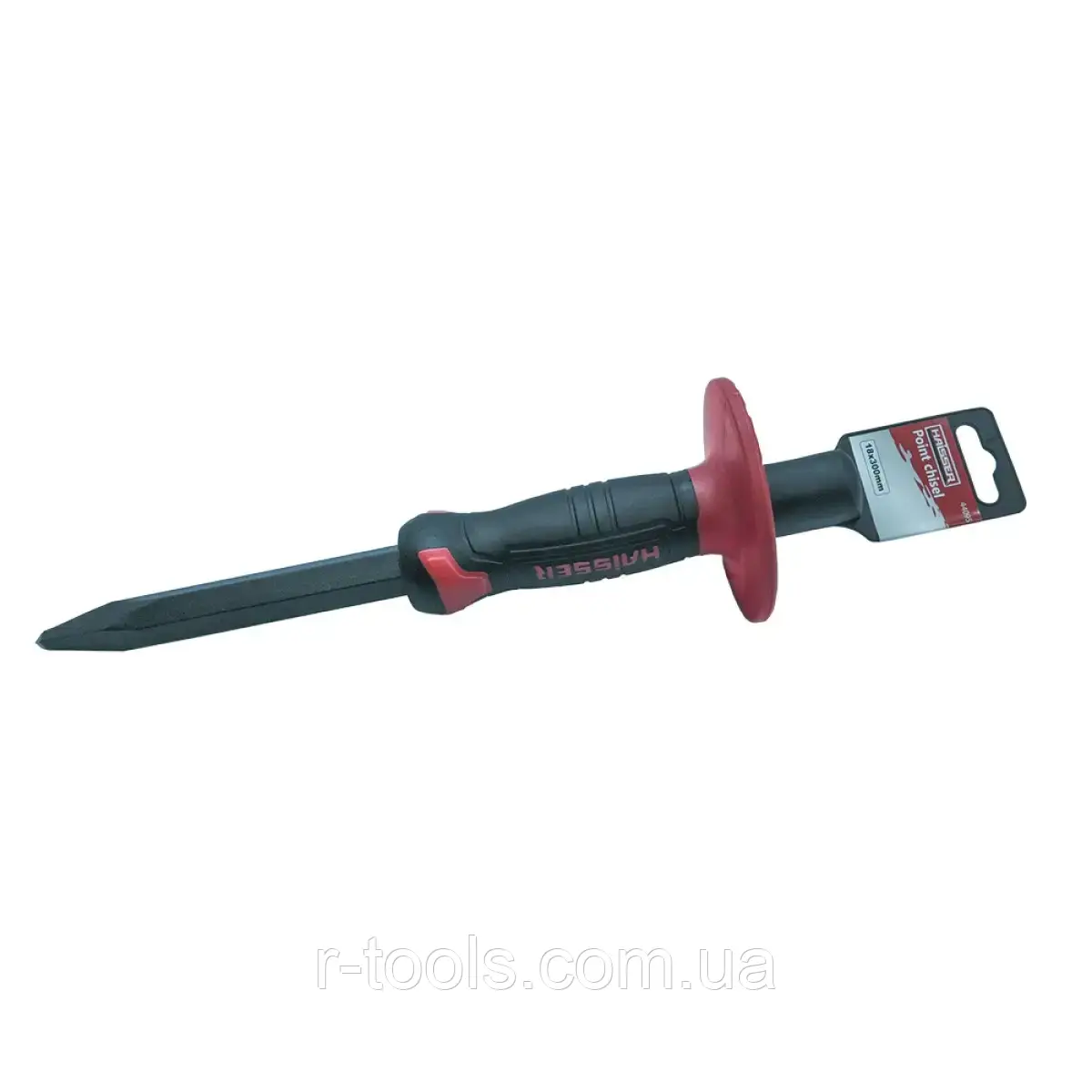 Зубило — піка 18х300 мм із захистом Haisser 44095 — виготовлений із високоякісної сталі. Використовується для проведення будівельних робіт, коли потрібно відколоти невеликий шматок бетону або штукатурки.